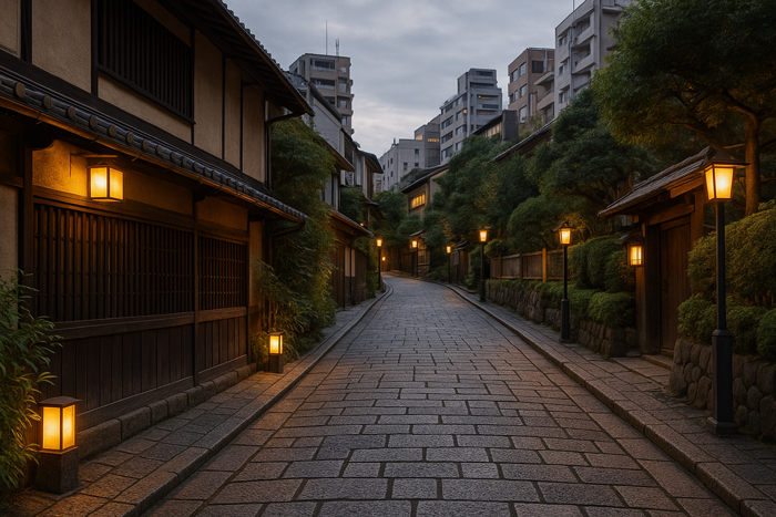 石畳が続く路地、しっとりした空気感、和洋が混ざり合う雰囲気──これらは心理的に非常に大きな効果を持ちます。